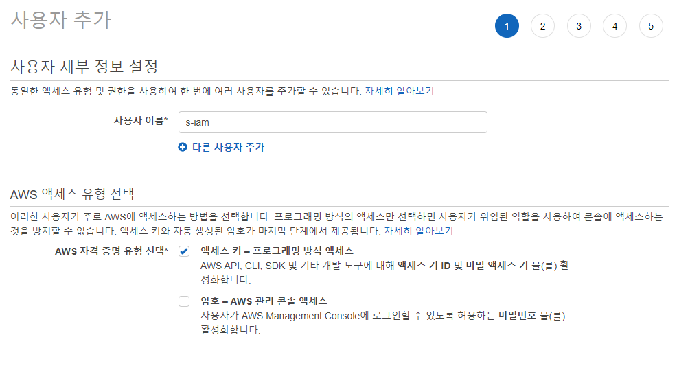 โ AWS Management Console ์ก์ธ์ค๋ ํด๋น ๊ณ์ ์ AWS ์ฝ์์์ ๋ก๊ทธ์ธํด์ ์ฌ์ฉํ๊ฒ ํ๋ ๋ฐฉ์.